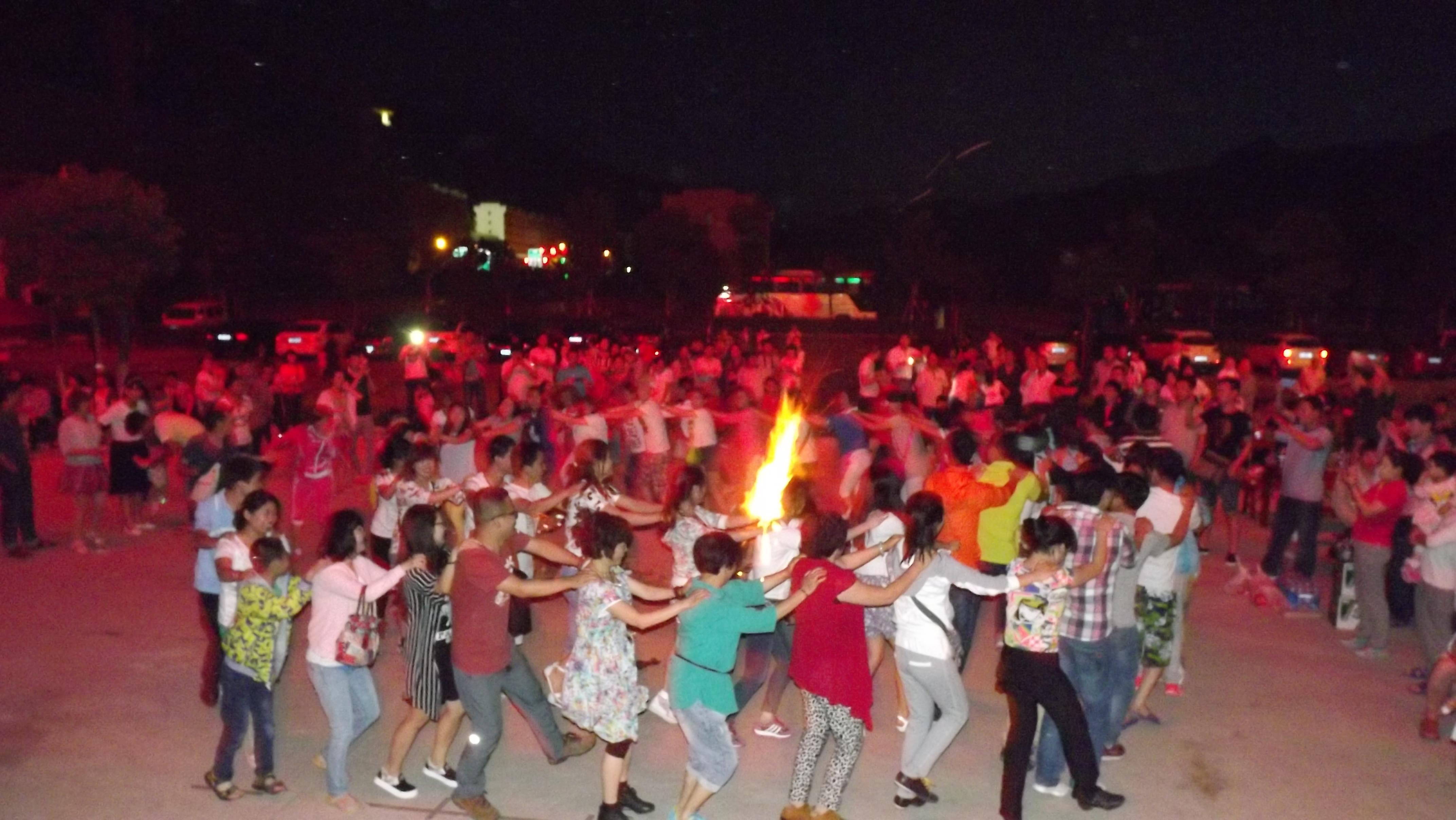 傍晚八點三十分,大家在金絲峽中心廣場集合就緒,由公司副總經(jīng)理黃辰先生點燃火束,篝火晚會宣布開始。大家手拉手在篝火周圍轉(zhuǎn)成一個圈,伴著歡快的音樂,一起跳舞,一起歡唱,頓時歡呼和喜悅彌漫在整個廣場,其樂融融,好不熱鬧!